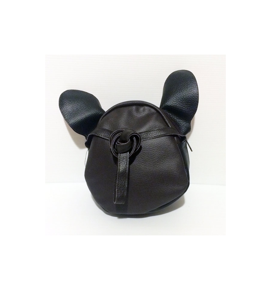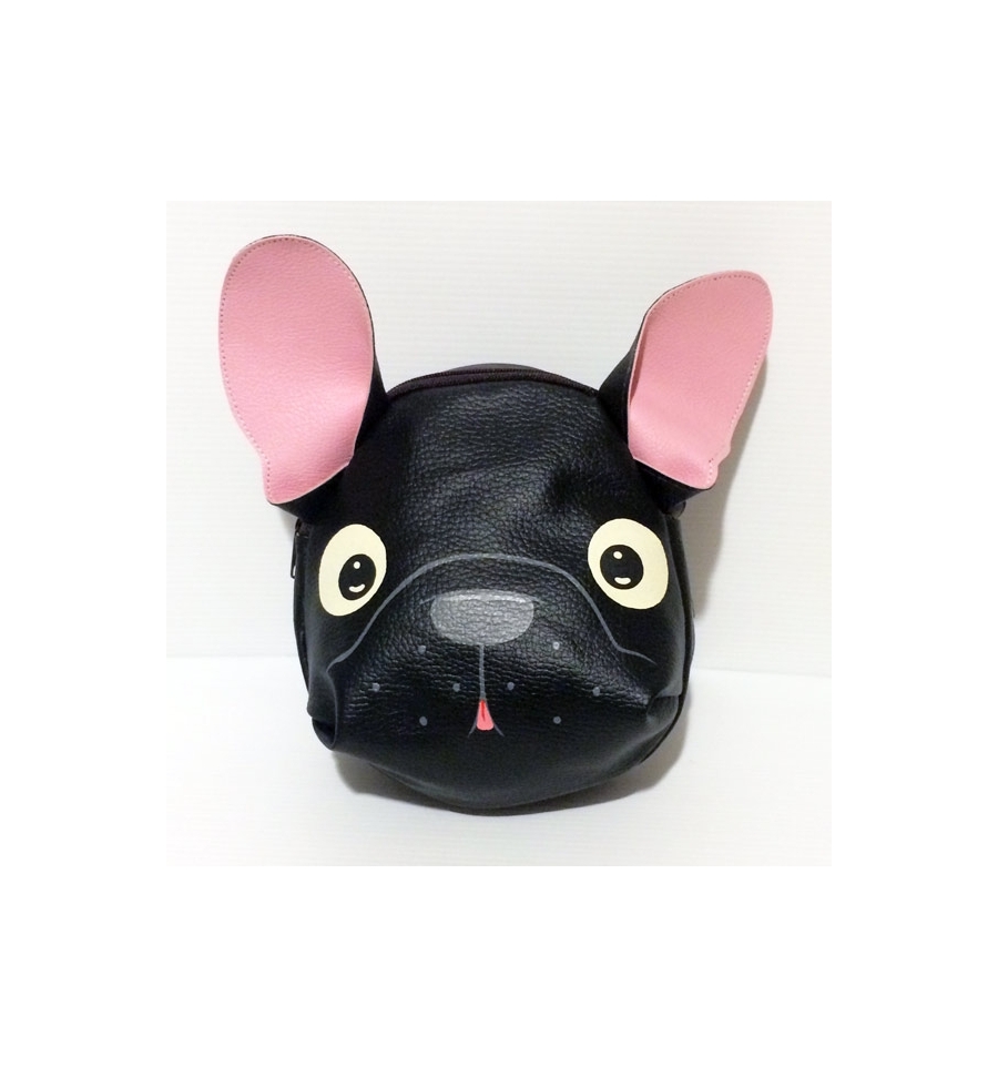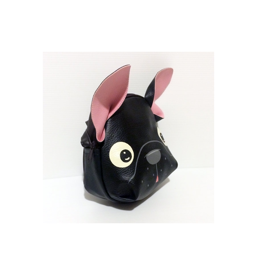 Small Hand-painted Bag Ecopleather: Black French Bulldog-shaped.Ideal for adults and young who are passionate of Handmade products.