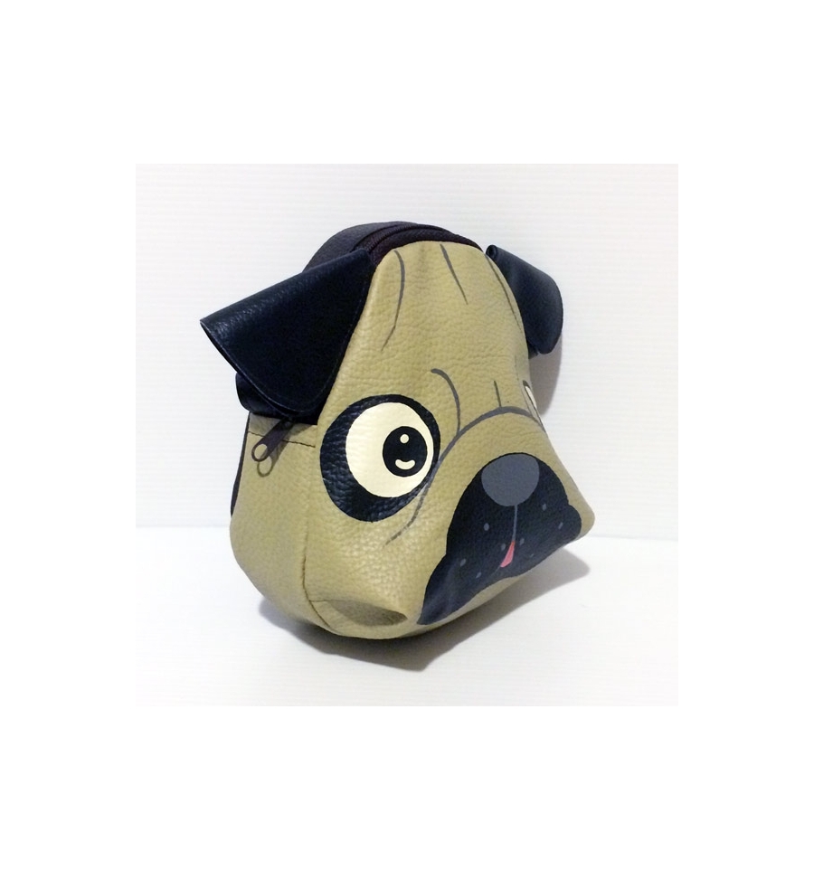 Small Hand-painted Bag Ecopleather: Dog Pug-shaped.Ideal for adults and young who are passionate of Handmade products.