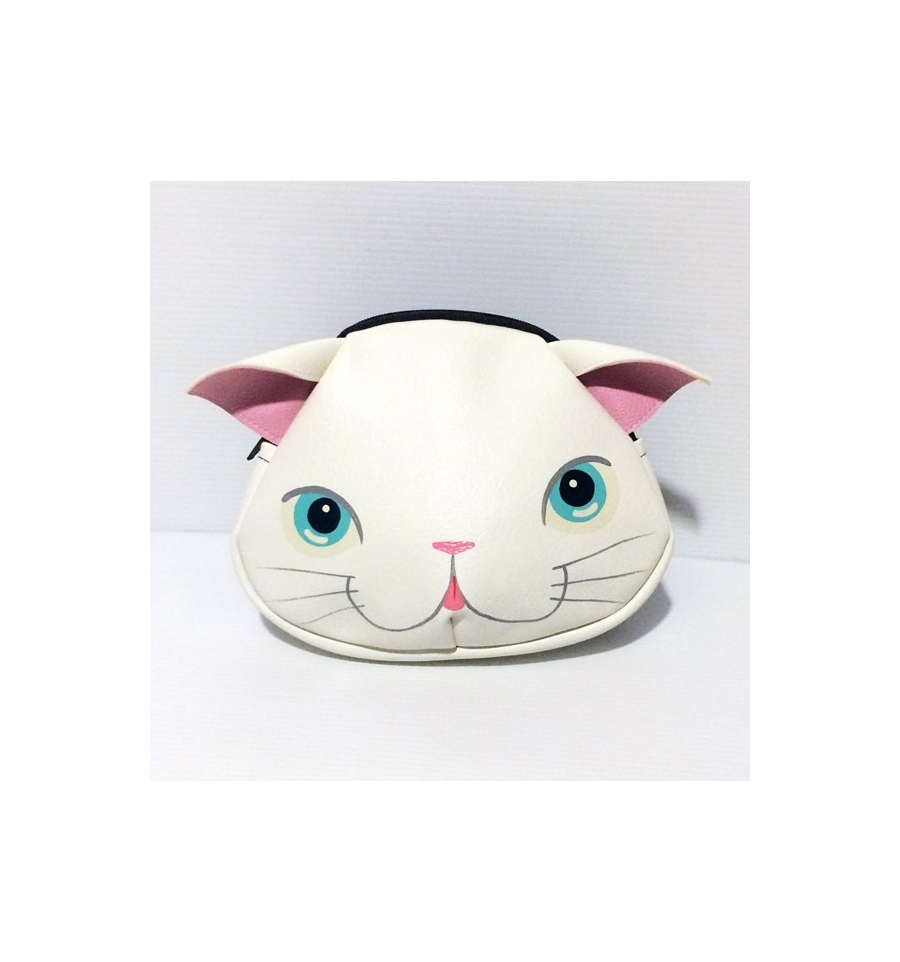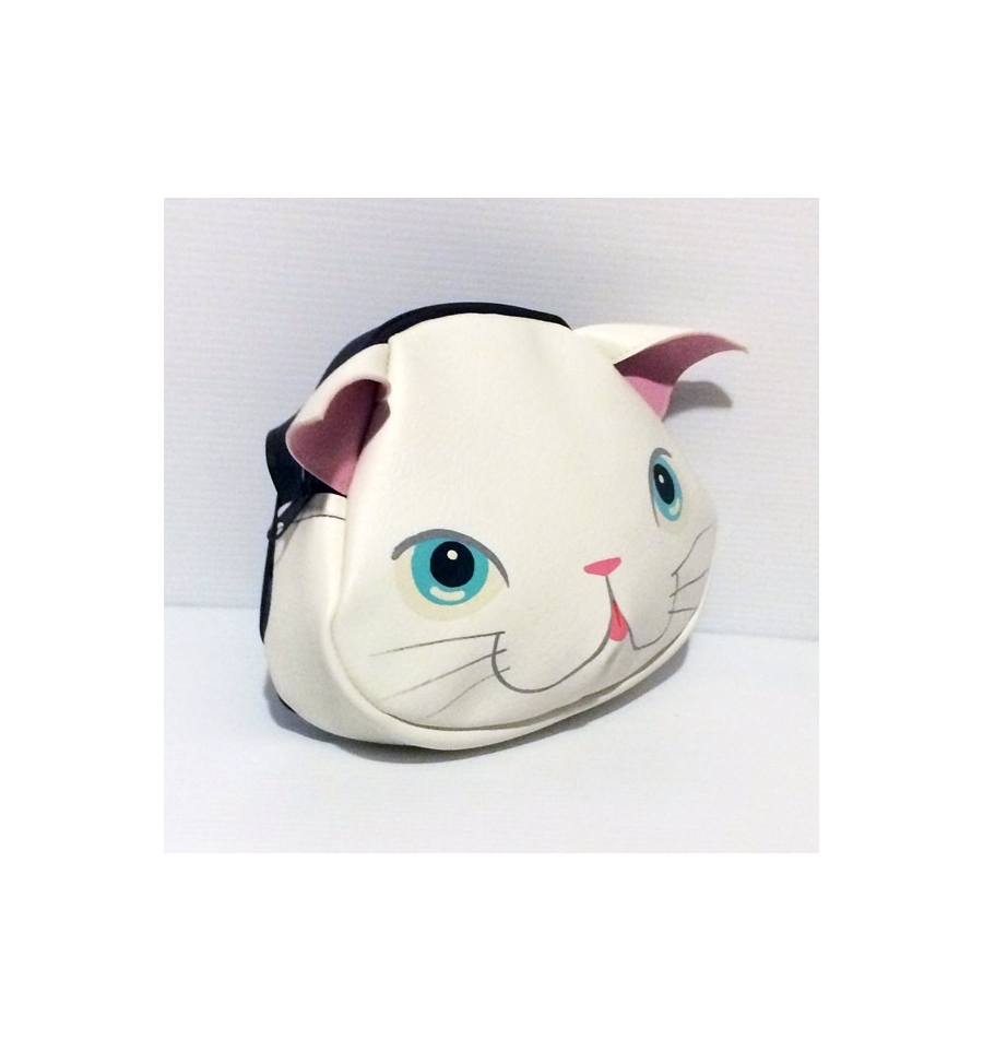 Small Hand-painted Bag Ecopleather: White Cat-shaped.Ideal for adults and young who are passionate of Handmade products.