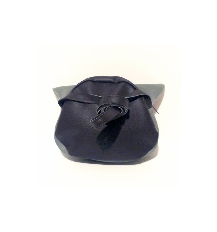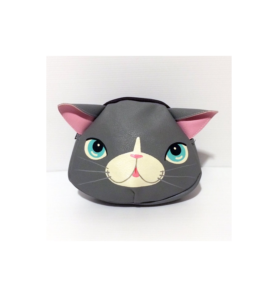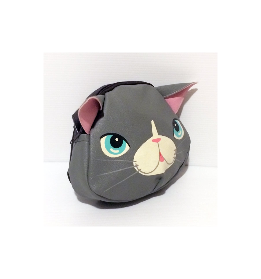 Small Hand-painted Bag Ecopleather: Grey Cat-shaped.Ideal for adults and young who are passionate of Handmade products.