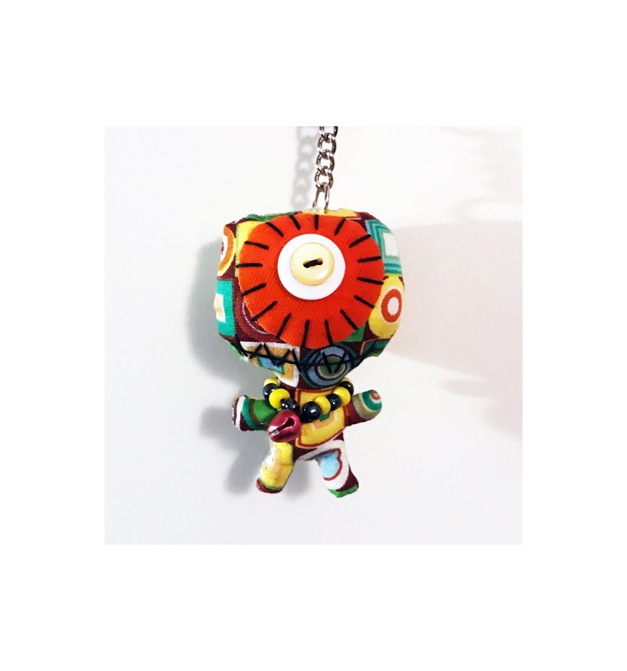 This handmade Monster keyring is made of multicolor cloth and buttons.