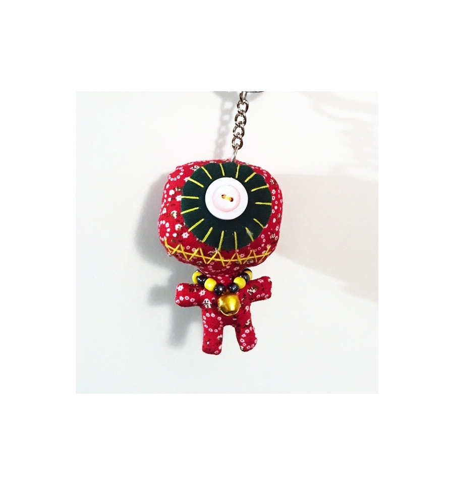 This handmade Monster keyring is made of multicolor cloth and buttons.