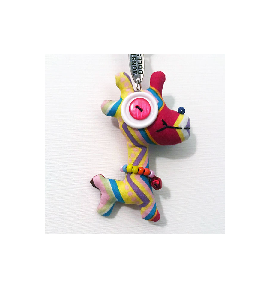 This handmade Giraffe keyring is made of colorful cloth and buttons.