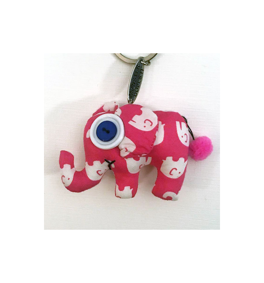 This handmade Elephant keyring is made of colorful cloth and buttons.