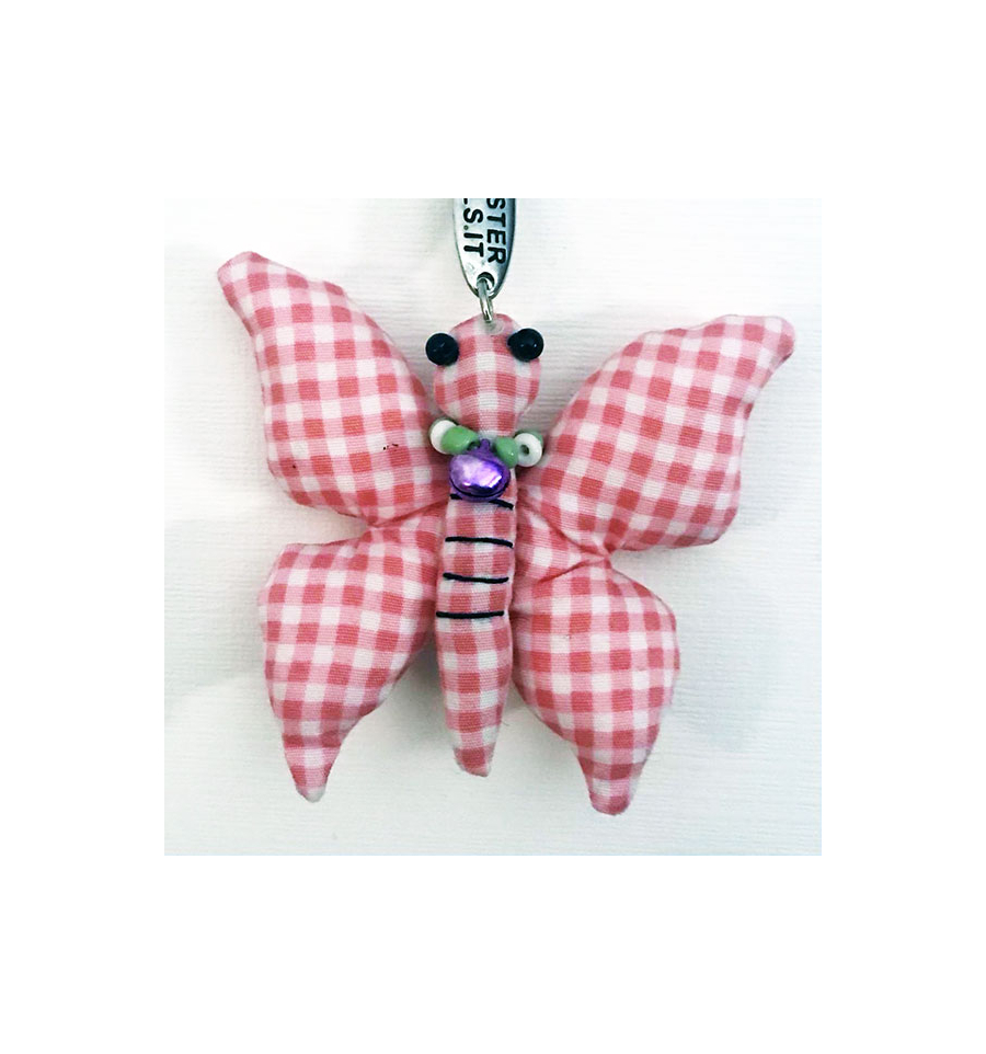 This handmade Fucsia butterfly keyring is made of colorful cloth and buttons.