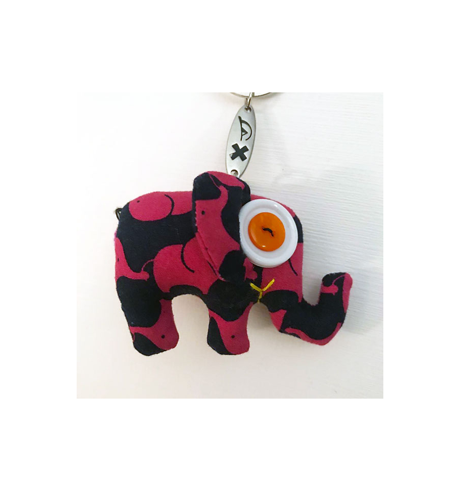 This handmade Elephant keyring is made of colorful cloth and buttons.