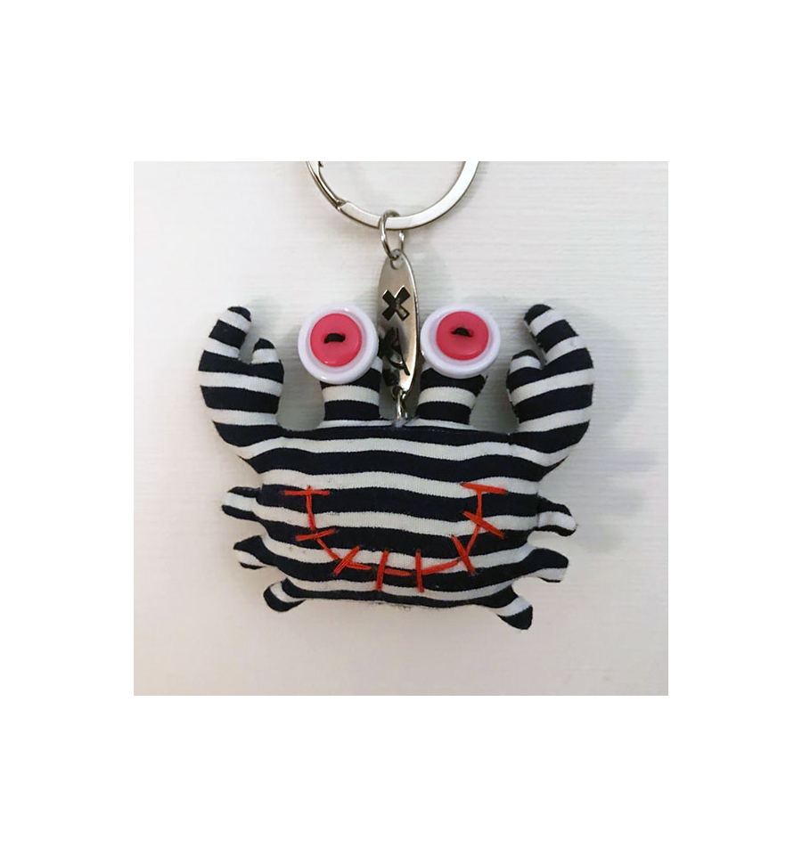 This handmade Light blue Crab keyring is made of cloth and buttons.