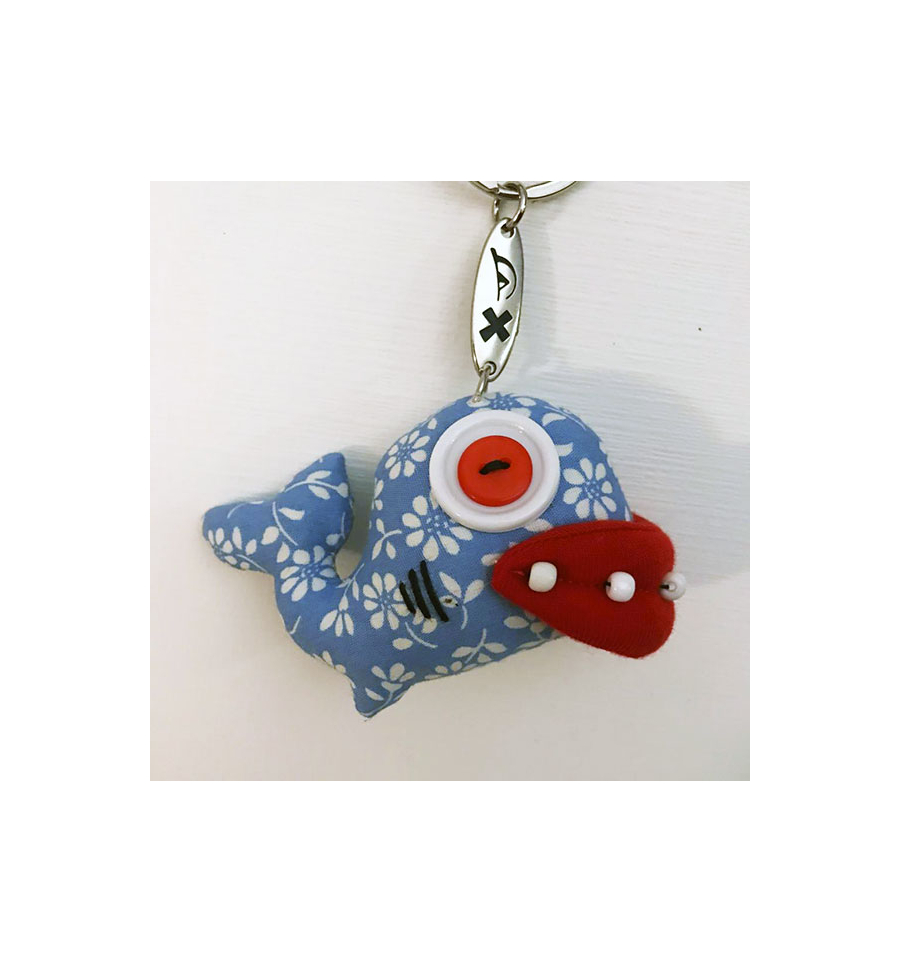 This handmade Coorful Piranha Fish keyring is made of cloth and buttons.