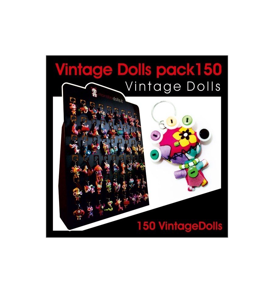 Il Vintage Dolls Pack150 include 50 tipologie diverse dei monsterdolls per una quantità totale di 150 unità.