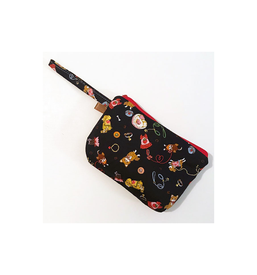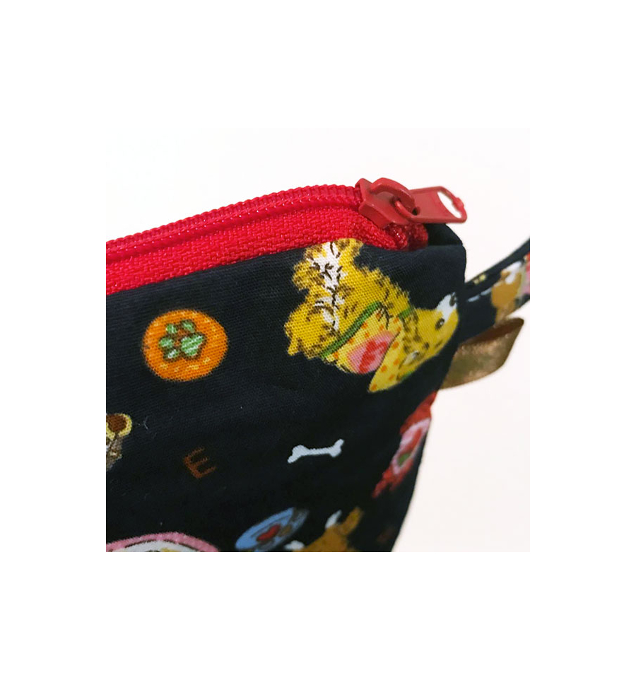 Pochette in stoffa porta oggetti con zip superiore e laccio.