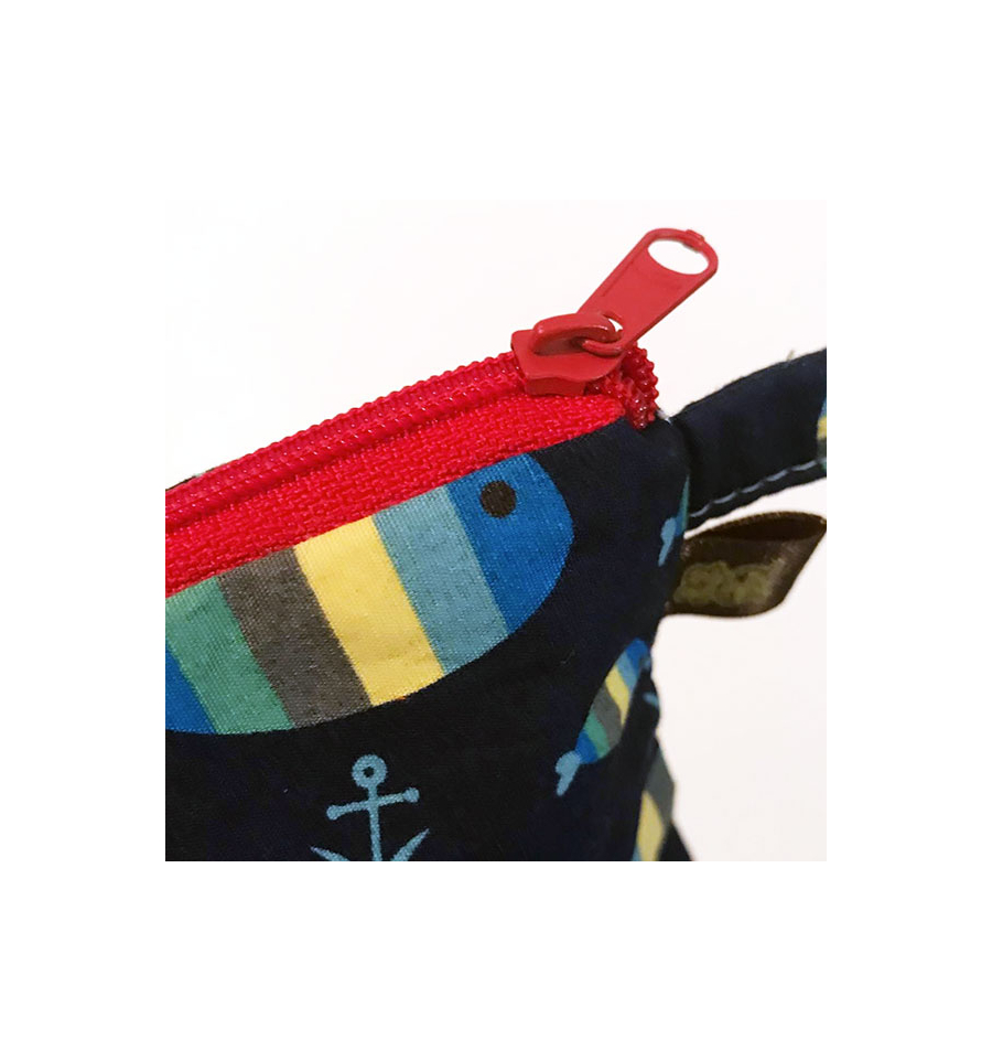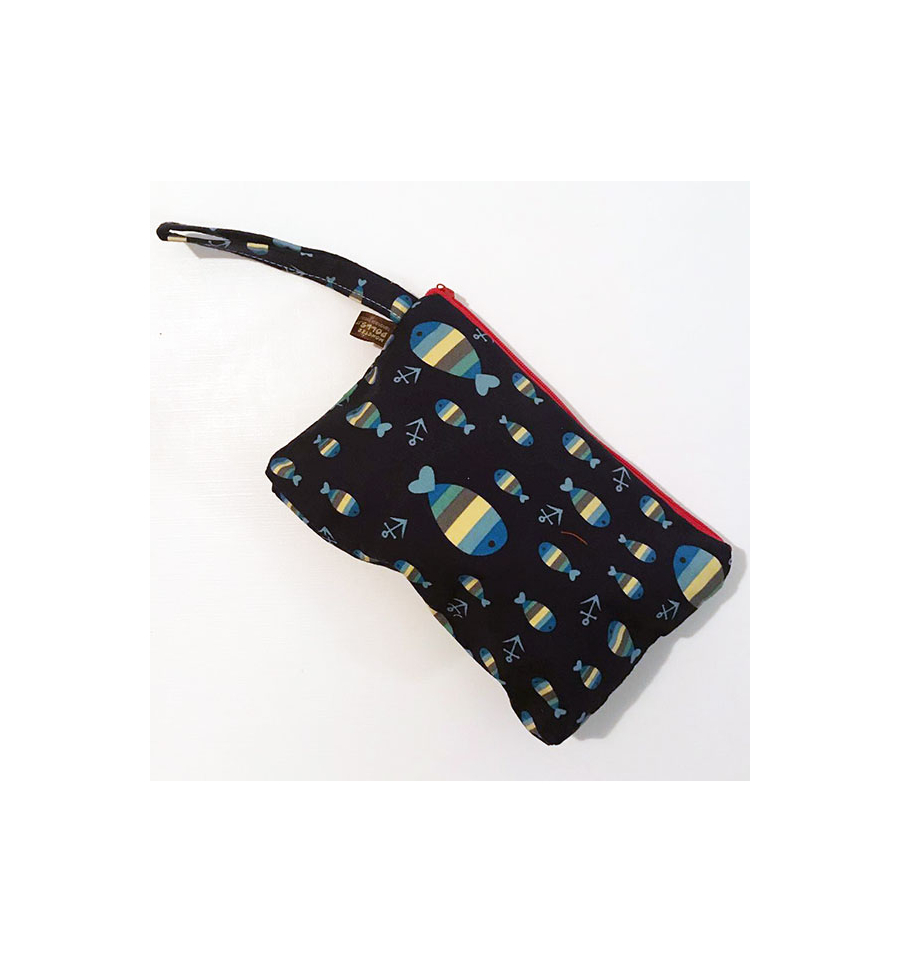 Pochette in stoffa porta oggetti con zip superiore e laccio.