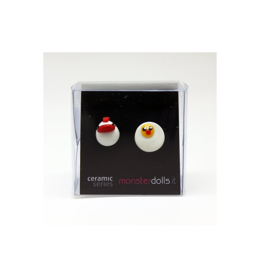 La teste dei personaggi sono orecchini di ceramica dipinta a mano.