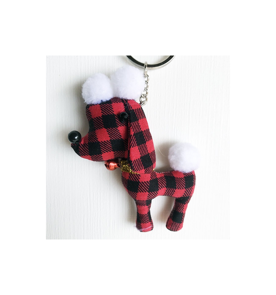 Questo portachiavi artigianale a forma di Barboncino è realizzato in stoffa colorata, bottoni e delle piccole perline che ne compongono la collana.