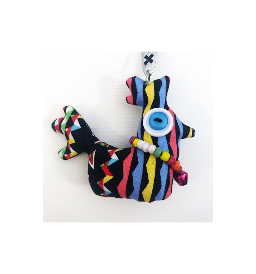 Portachiavi Gallina Vintage Dolls in stoffa e bottoni.