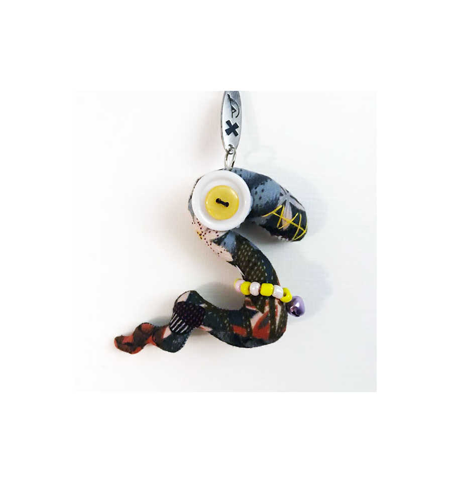 Portachiavi Vintage doll artigianale a forma di Serpente in stoffa colorata.