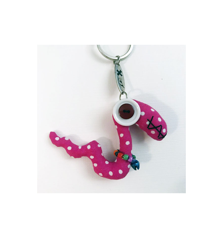 Portachiavi Vintage doll artigianale a forma di Serpente in stoffa colorata.