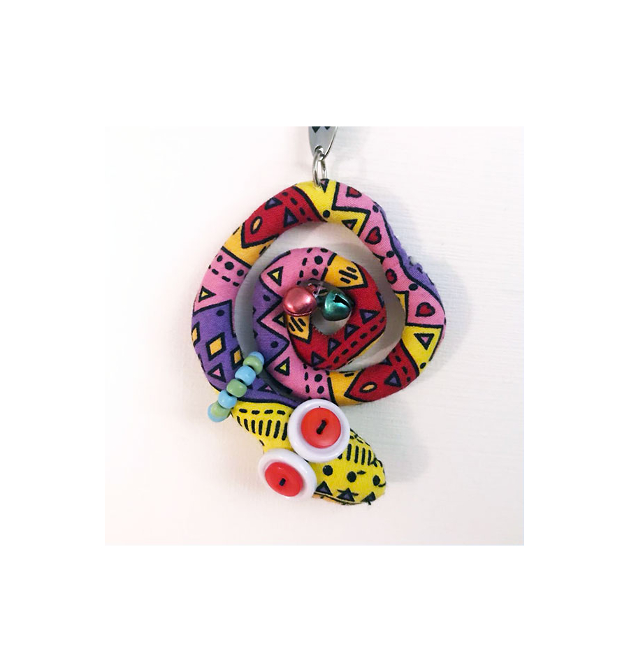 Portachiavi Vintage doll artigianale a forma di Serpente Boa in stoffa colorata.