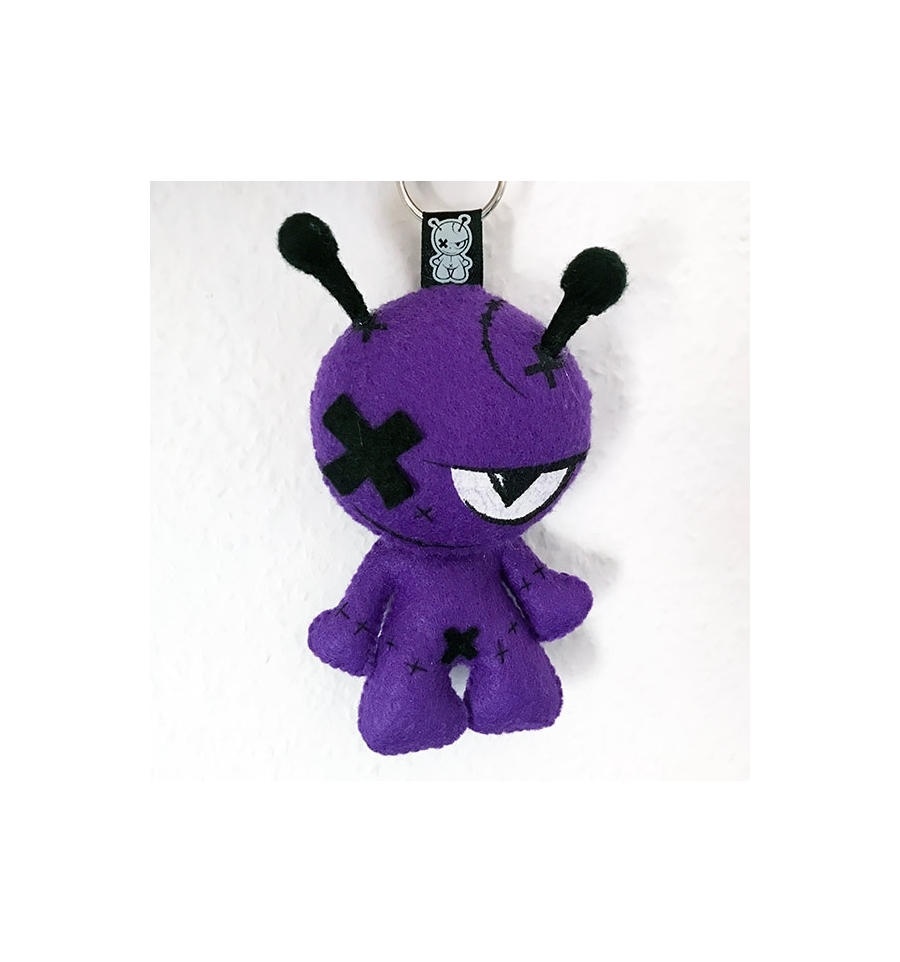 Portachiavi Voodoo Moodoo corpo Viola, cerotto e antenne (spilli) in testa.
